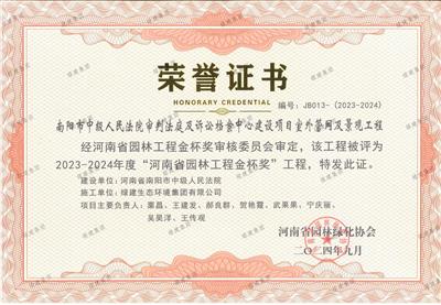 2023-2024年度“河南省園林工程金杯獎(jiǎng)”——南陽(yáng)市中級(jí)人民法院審判法庭及訴訟檔案中心建設(shè)項(xiàng)目室外管網(wǎng)及景觀工程