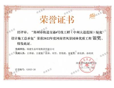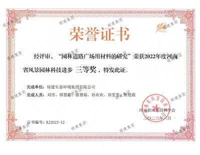2023年度河南省風(fēng)景園林科技進(jìn)步獎(jiǎng)三等獎(jiǎng)