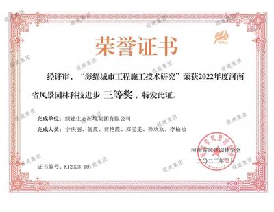 22年度海綿城市工程施工技術(shù)研究科技進(jìn)步獎三等獎