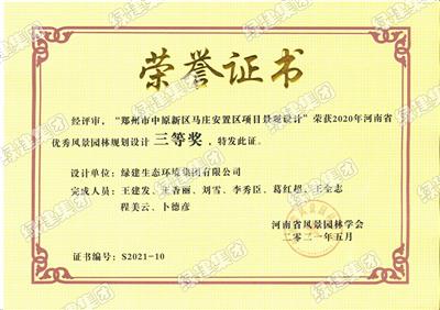 海綿城市工程施工技術研究榮獲2022年度河南省風景園林科技進步獎三等獎
