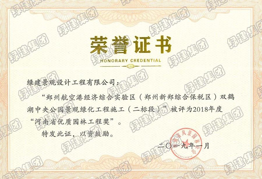 雙鶴湖二標(biāo)榮獲2018年度河南省優(yōu)質(zhì)園林工程獎(jiǎng)