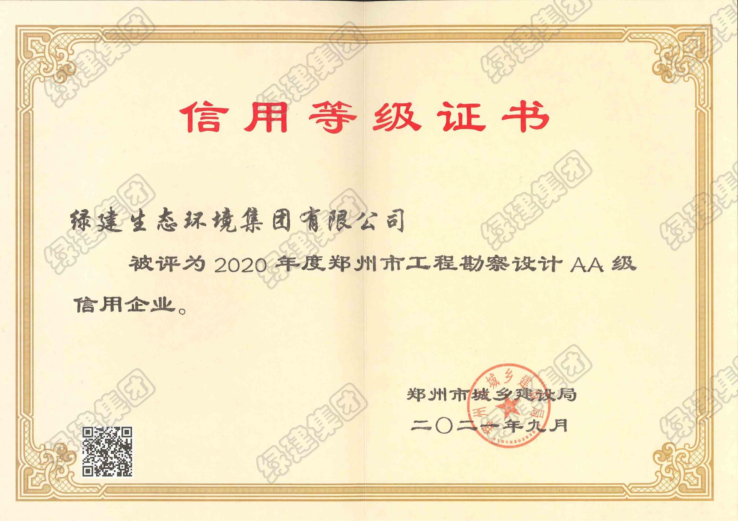 2020年度鄭州市工程勘察設計AA級