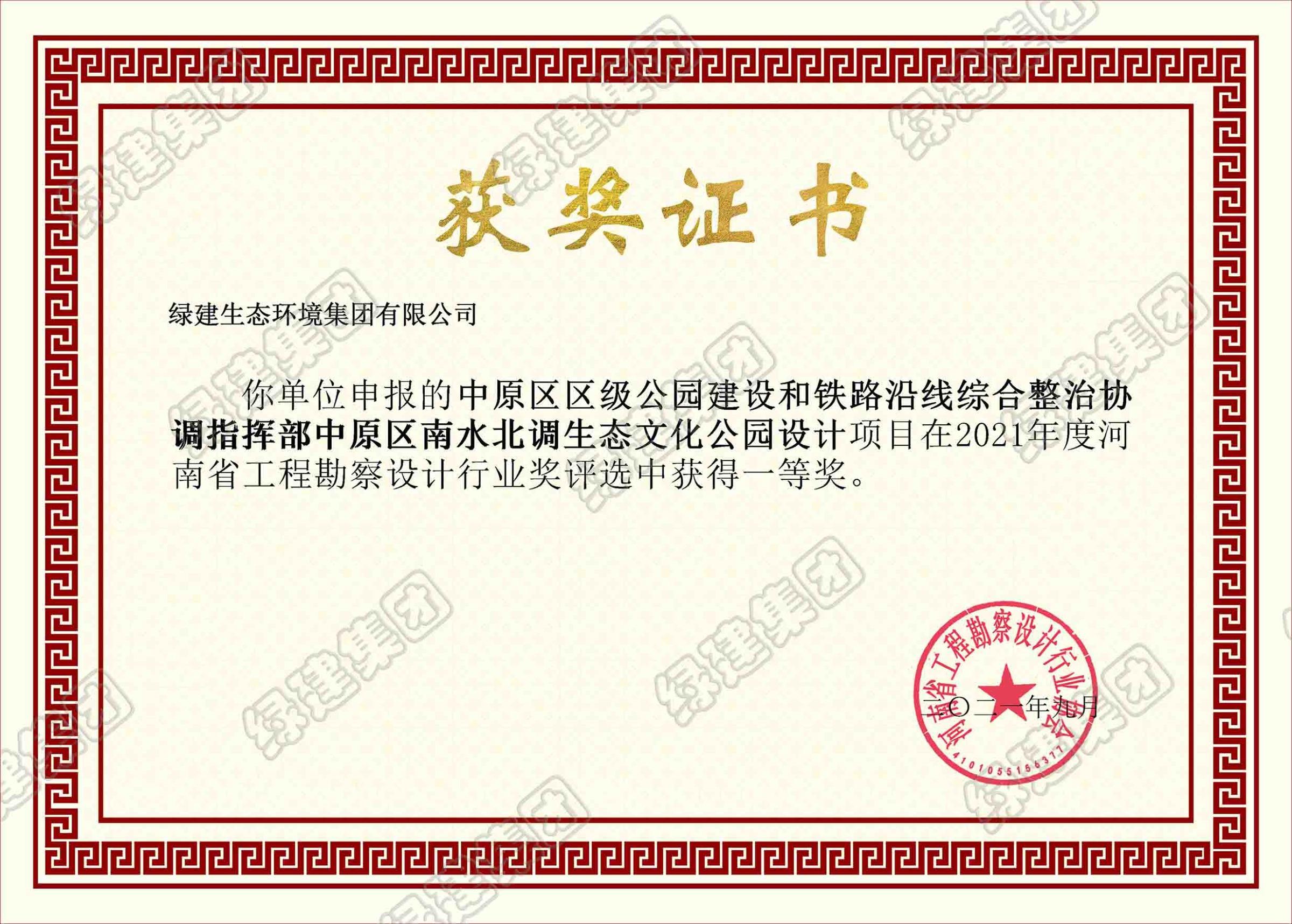 河南省工程勘察設(shè)計(jì)行業(yè)獎(jiǎng)一等獎(jiǎng)